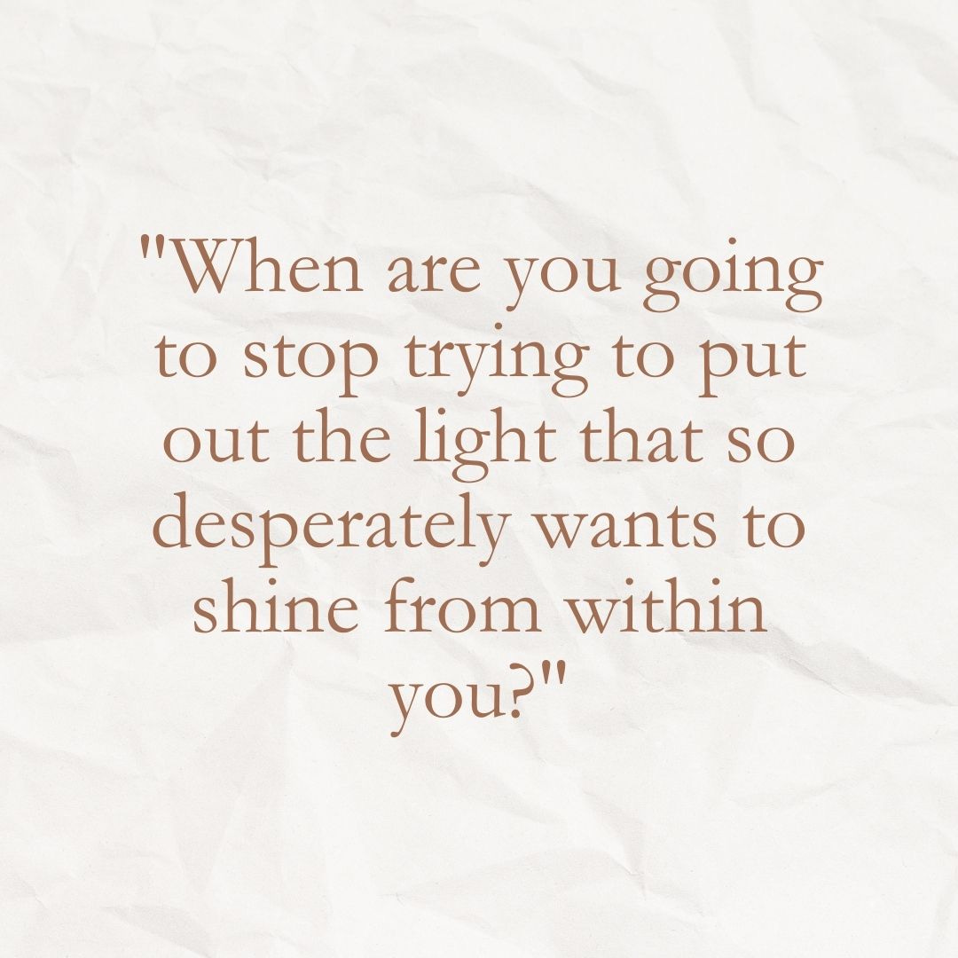 Of course, the sentiment that I expressed does not only extend to our relationship. In fact, what I said seems to extend out to everyone I have ever come into contact with throughout my entire life. For as long as I can recall, I have always looked to other people to tell me whether I am a good or a bad person. Whether I am worthy of love or respect. I am forever looking outwards to the world for approval without ever considering to turn inwards and ask myself, “Well, what to we think about this?”
