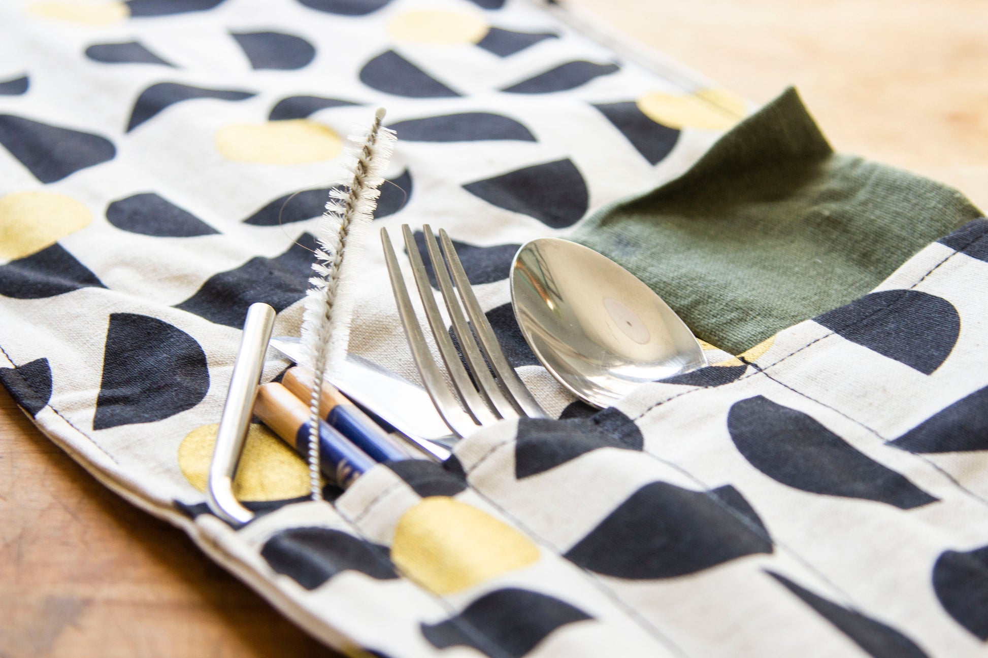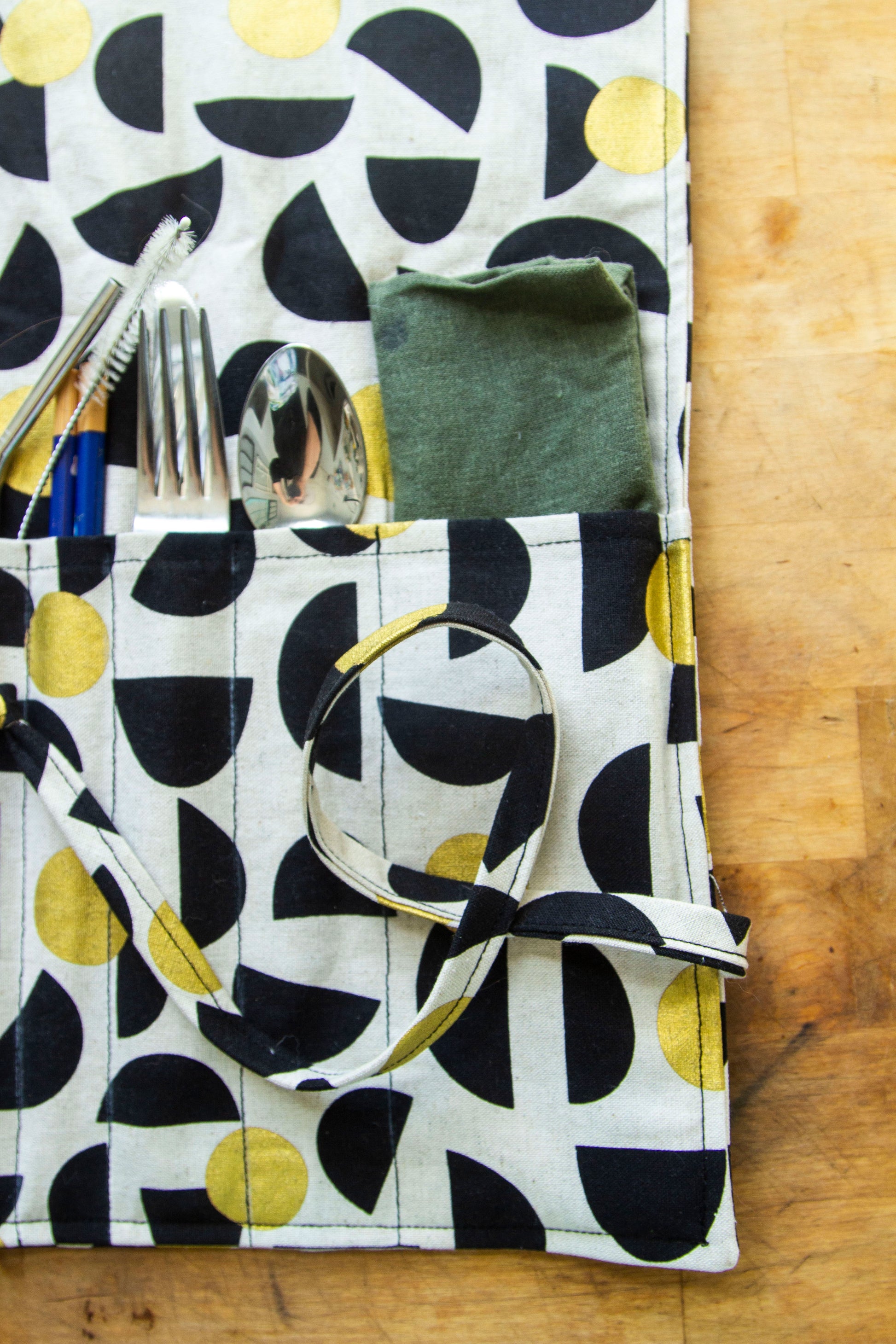 The Lavern Utensil Wrap is a wonderful scrap buster! This handy project is perfect for toting around an extra set of utensils, especially for all those trying to lead a #ZeroWaste life. Plus it is a super fun & quick sew!