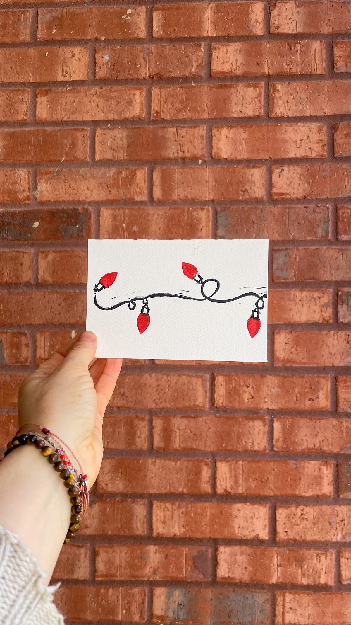 This card is handmade in every way. I start by cutting down large sheets of acid-free, cold press, 140lb watercolor paper into two different sizes, that are hand scored into the shape of a card with the final sizes of 4x6 and 5x7. Then, I carve soft, rubber blocks into various designs. And finally, I hand print each design onto the handmade cards using acid-free, waterproof archival ink.