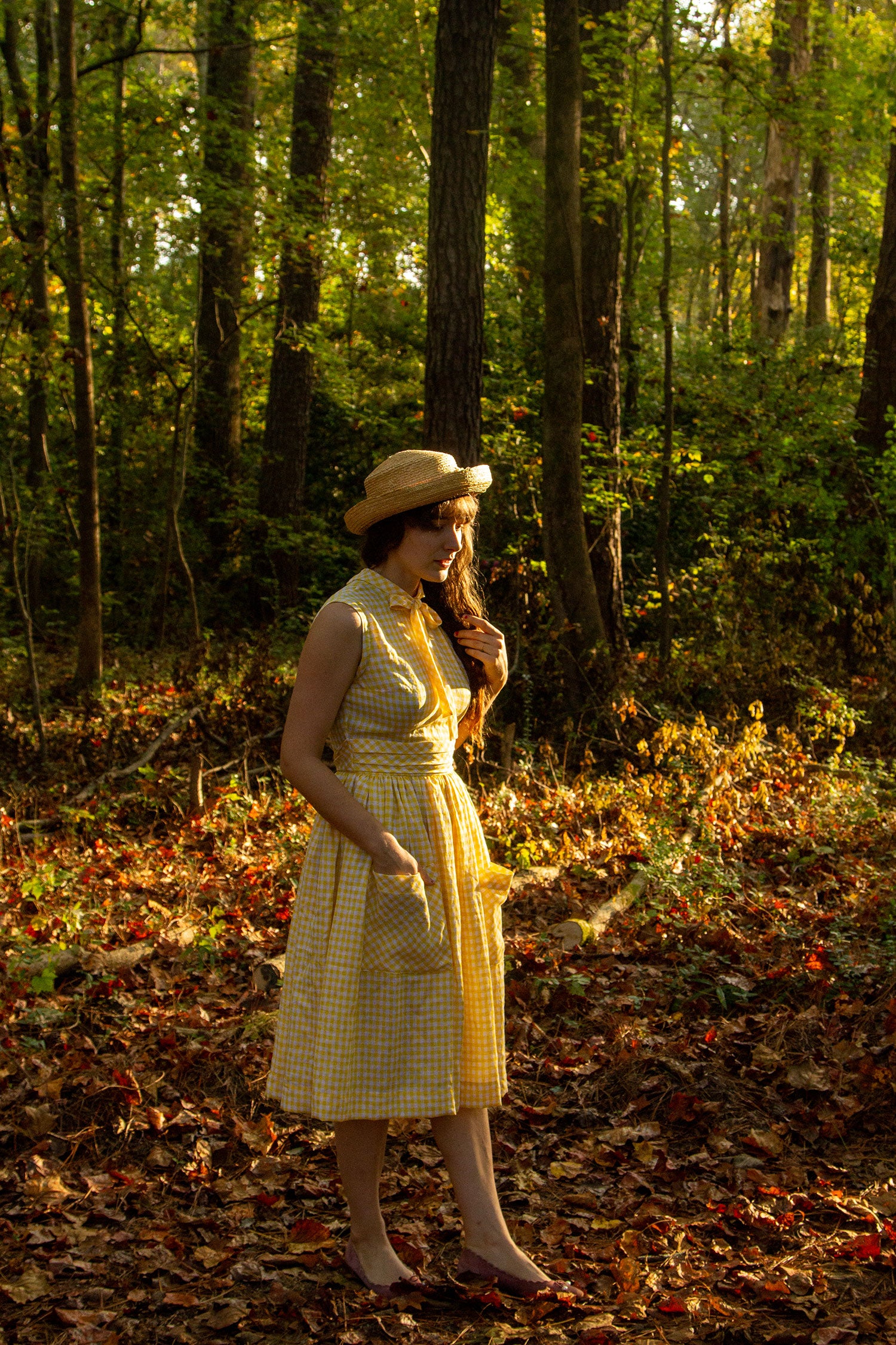 Stone Mountain Fabrics Yellow 100% Linen Gingham, Mixed Vintage plastic yellow buttons, Alexander Henry Cotton Bias Tape, Cloud 9 Organic cotton bias binding