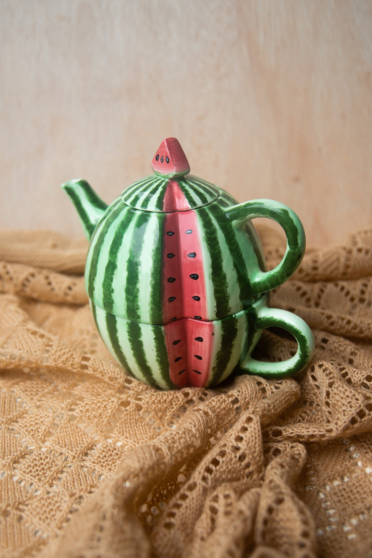 Take a refreshing sip of tea from your very own Watermelon teapot, complete with an oversized cup to match! This beautiful teapot set is perfect to bring out each and every summer, ready for all your picnic fantasies. Just looking at it makes the mouth water!